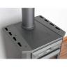 Корпус печи покрашен термостойкой краской, он несёт функцию каркаса и имеет малый вес, общий вес печи 61 кг. Задняя стенка печи и верхние чугунные элементы имеют множество специальных технологических отверстий для отвода нагретого воздуха. Дымоход подсоединяется к печи сверху через чугунный фланец диаметром 120 мм.
