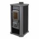 Размер топки 200*250*360 мм. Подключение к дымоходу производится через чугунный патрубок, расположенный сверху. Внешне печь облагорожена вставками различных цветов из керамики.